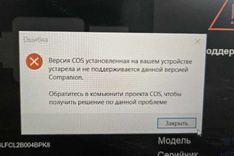Эта ошибка означает, что текущая версия ONE, установленная на вашем устройстве, несовместима с новой версией Companion.