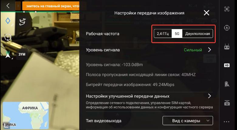 Частота 5.1-5.2 ГГц активируется только на DJI RC Pro, DJI RC Pro Enterprise (кроме RC Pro Enterprise V2), DJI RC Plus)